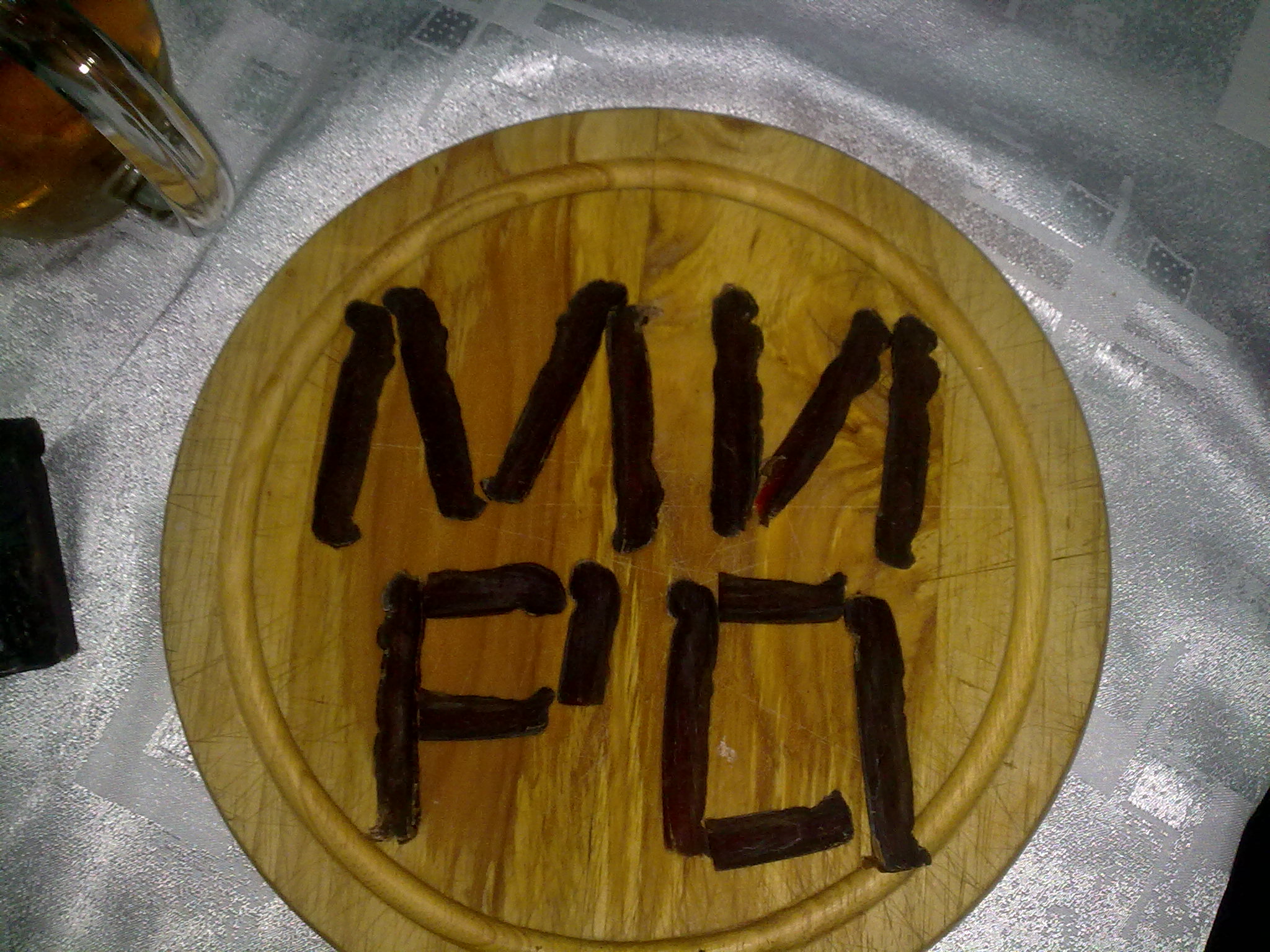 Гледах по търновския сбор на сергиите пишат име с ориз .. и разни подобни глупости, та рекох да си го напиша и аз. След упорития труд за надписа си го изядох де :) с Полудомашна биричка. Където остана на дъното от бутилирването го оставих в хладилника да се утаи и 50/50 купешка -домашна да има лека газировка.