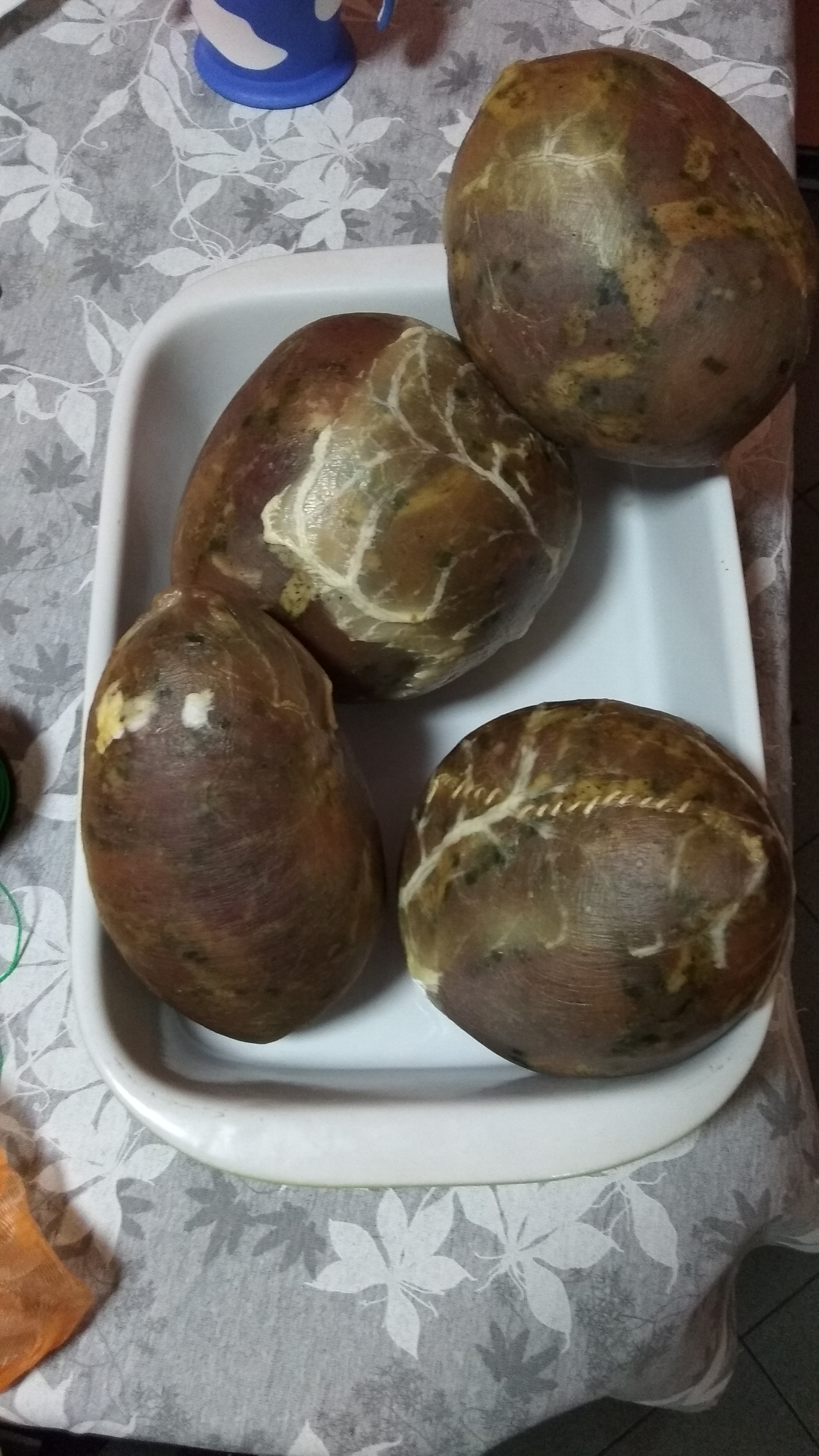 Да, ама не. Събрах 8,5 кг в тях. Само две пуски бяха над кило, имаше две по 7-800гр. Сетих се, че на село имам едно осолено телешко сляпо черво в хладилника от миналата година. Взех останалата плънка и отидохме на село. Надявах се да събера всичко в червото и да поръчам още 2-3 мехура, с които да запечатам напълнените.