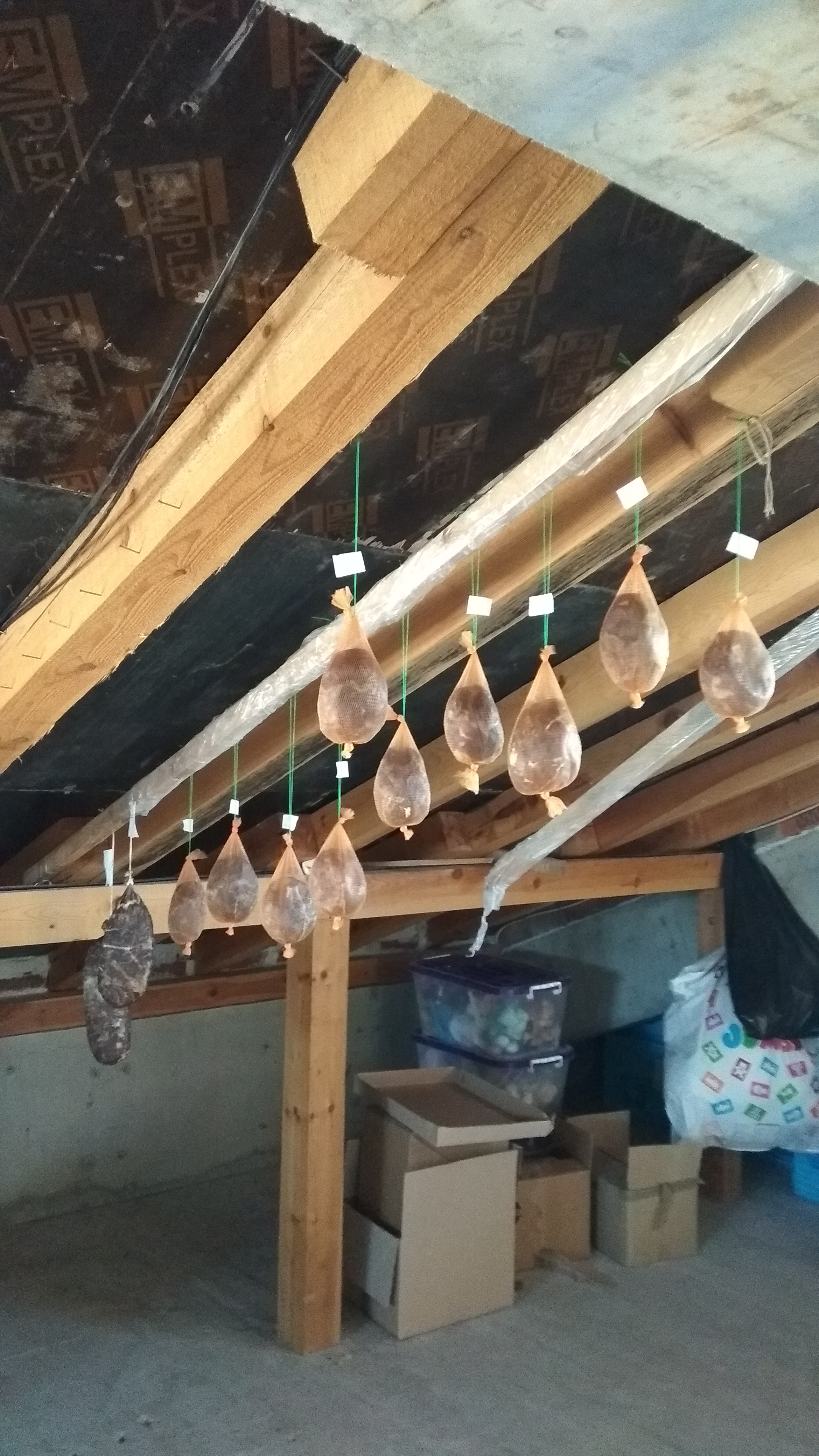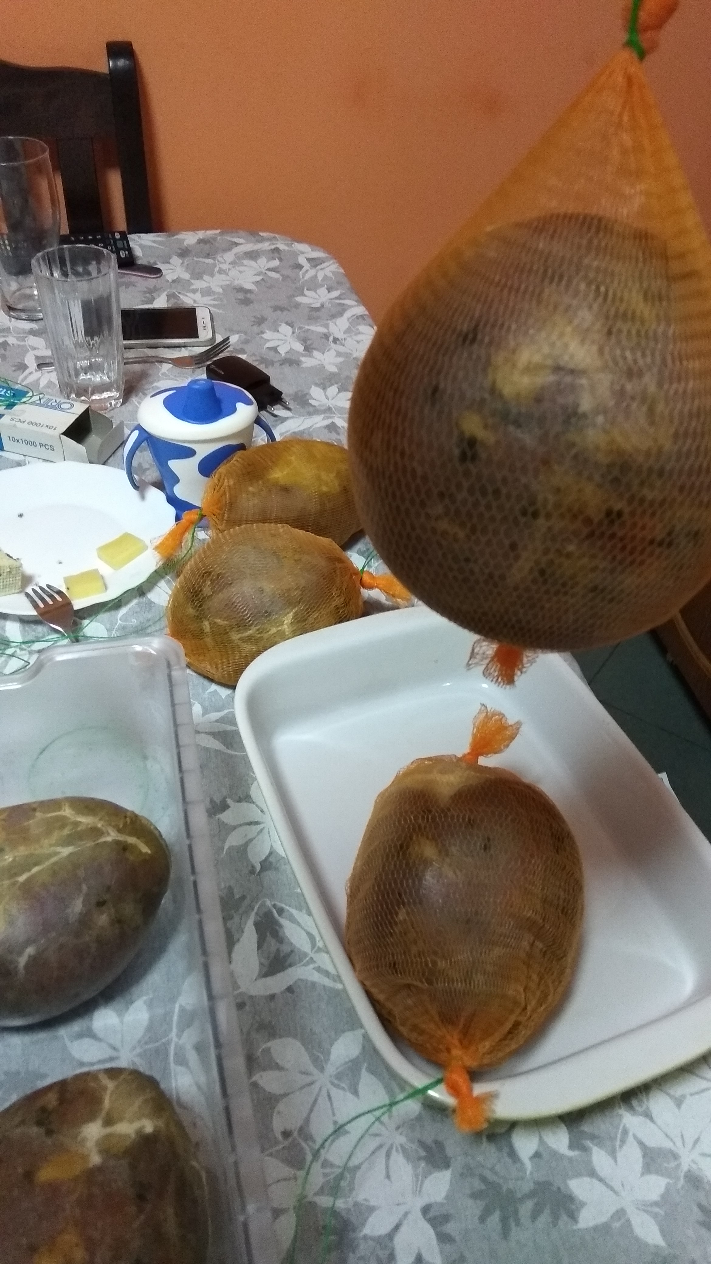 Имах проблем с мехурите. Поръчах 10 с молба към продавача да събират по кило, кило и половина. Имах 11 кг месо, с подправките малко над 12. Очаквах да влезе в 8-9 мехура и да ми остане поне един да го нарежа и да залепя с него шевовете.