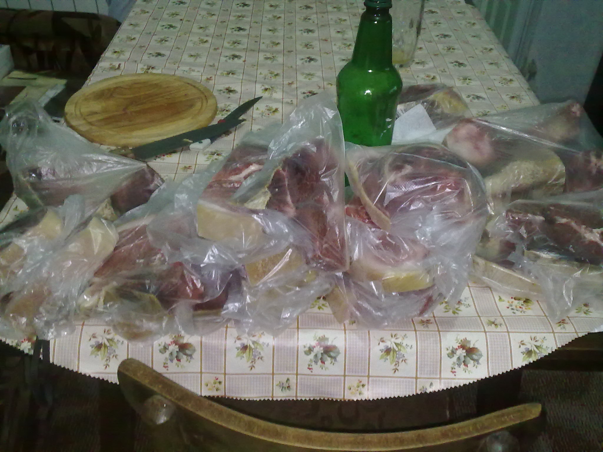 Осолих бутчето и понеже времето е топло го заложи в хладилника. Така осолен без да се вижда месо трябва да престои 45 дена, след ковто се измива с вода и се окача да съхне. Ако време даде и не стане някой фал мисля да го държа до март месец да съхне, а после дигустацийка