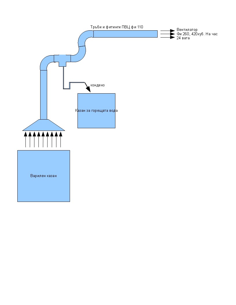 Викторе, аз последните 2 варки ги правих в кухнята и забелязах, че парата кондензира още в момента, в който стигне до решетките на аспиратора. После всичко капе по плота и обратно в казана. Та в тази връзка си мисля, че най-добре е аспиратора да е от вида с наклонени под ъгъл (примерно 45°) лабиринти - крайстенен тип май се казва. Ако пък се махнат решетките, тази влага ще кондензира около мотора и може да има тънка струйка дим.