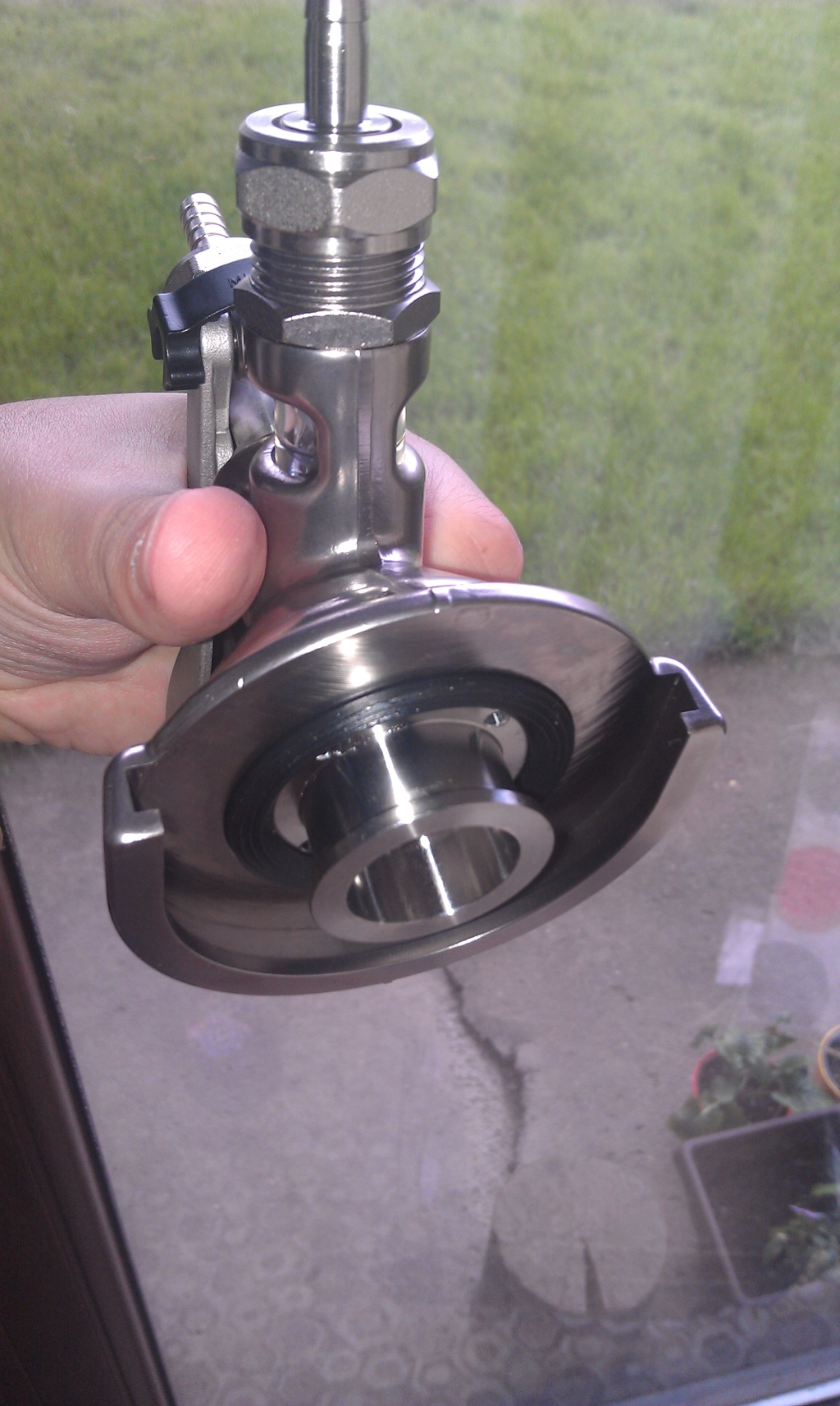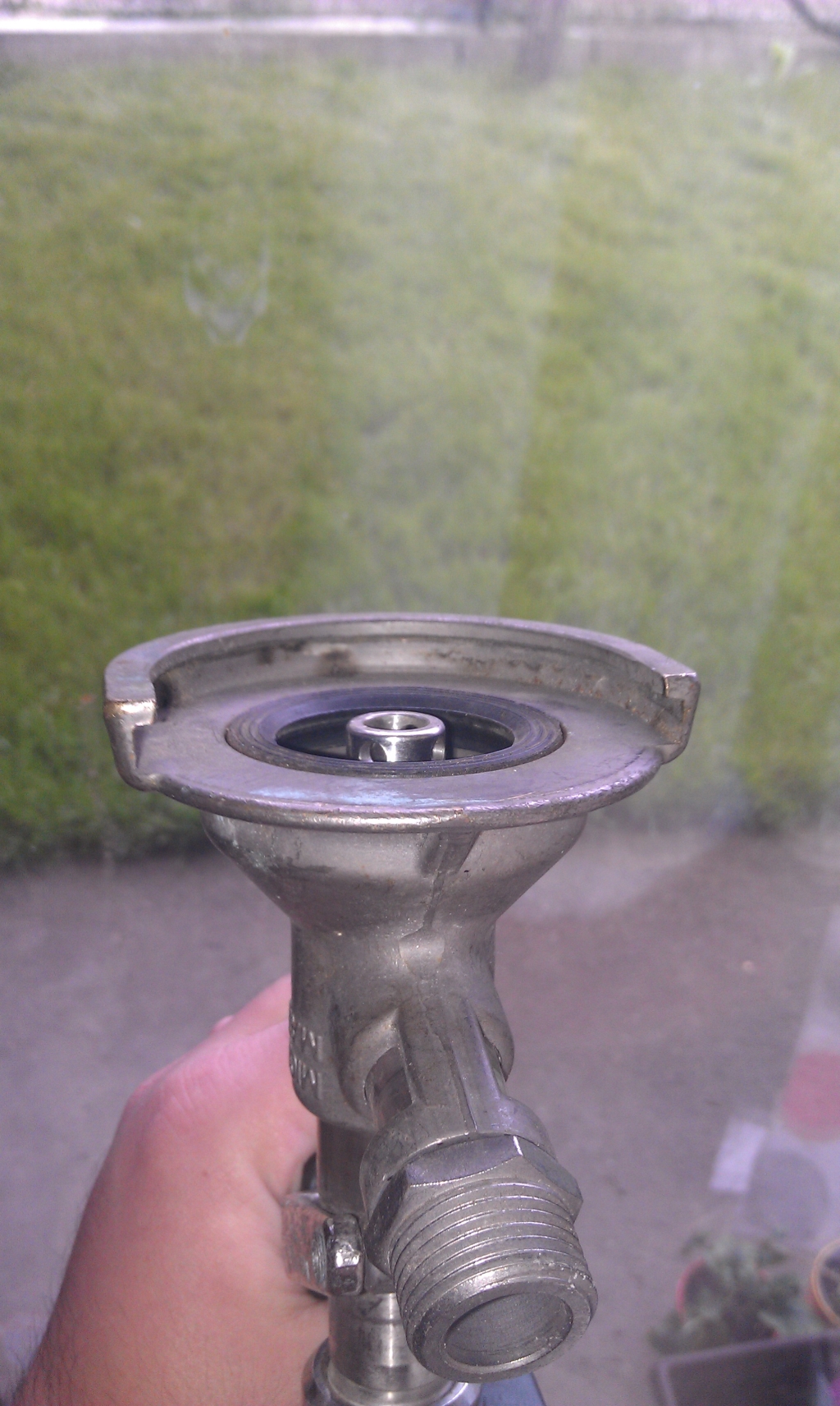 Пускам малко снимки на глави на кегове за да предупредя колегите да внимават като си търсят глава за кега. За ПЕТ кеговете ви трябва "плоска" глава, която в същност е от система А. Аз си взех една нова и една втора употреба. Оказа се обаче, че главата втора употреба не е система А, а е система М. На външен вид и отстрани изглеждат еднакво както можете да видите от снимките. И двете глави става и могат да се слагат на кега, обаче когато натиснах ръчката на грешната глава, кега изпука и цялата част с тръбата се счупи и изпадна. Разликата е в буталцето на главата, пускам малко снимки да видите.