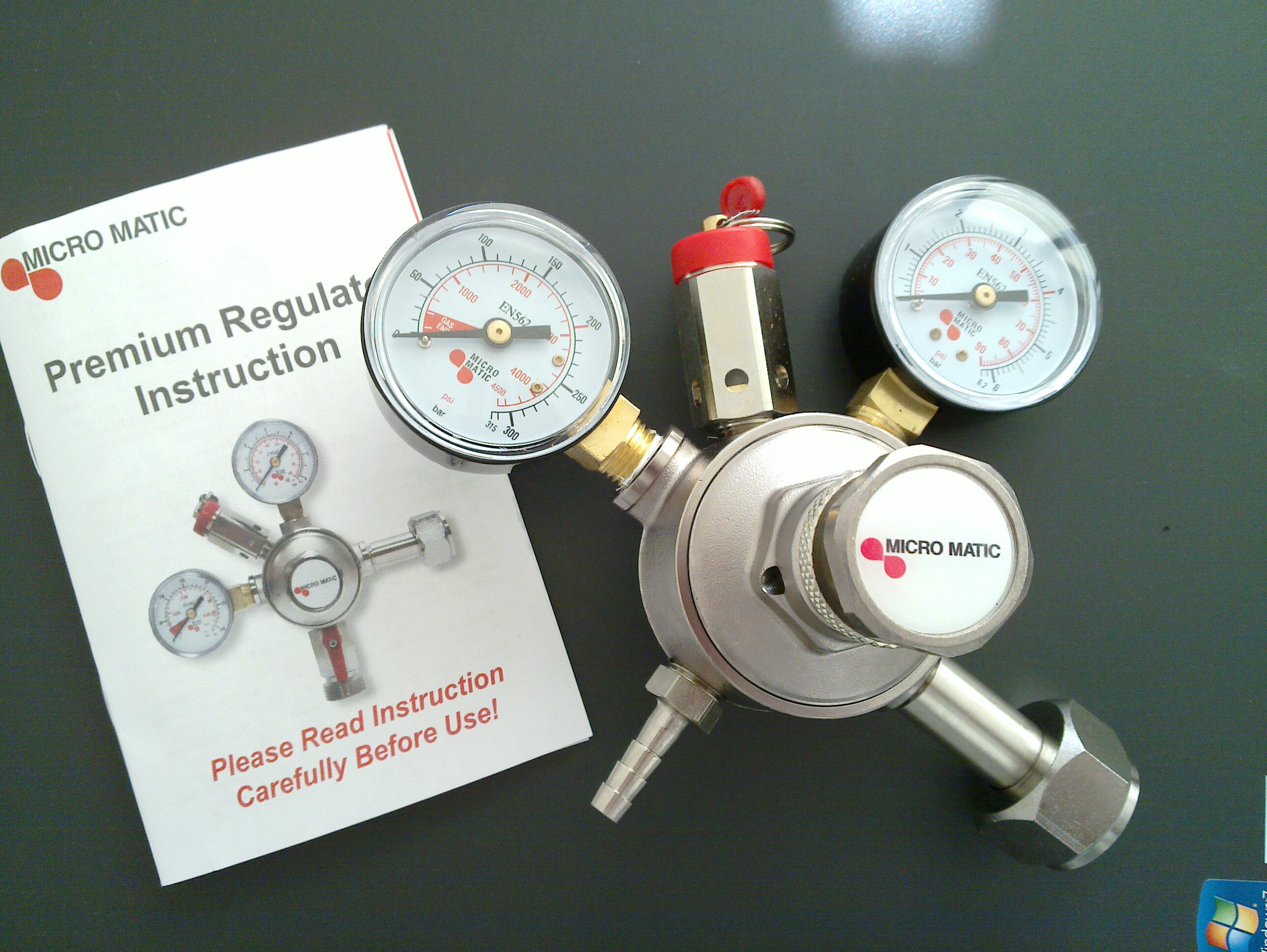 В крайна сметка се сдобих с чисто нов редуцир "Микро Матик" за CO2/N2, на доста прилична цена. Предполагам, че е китайче, но изглежда добре изработен.