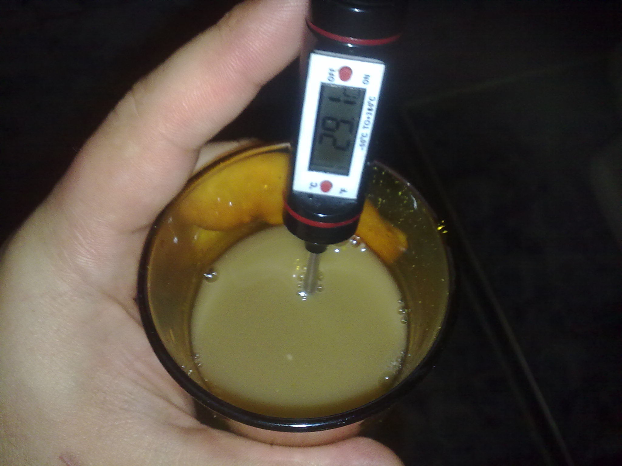 Загрях водичката сложих малца на 55 гр.