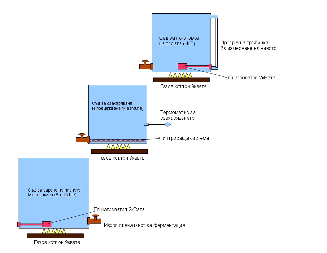 Според мен би било добре да се сложи и една филтрираща система на казана за варене, по подобие на маштюна. Така ще се избегне допълнителното досадно прецеждане на пивната мъст преди зареждане на ферментатора ;)