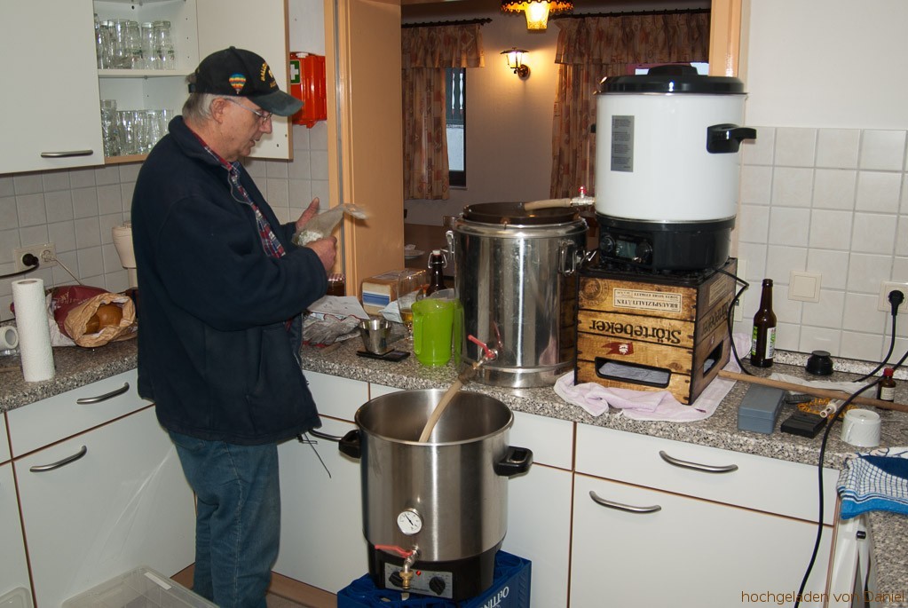 Прецежда много добре, разбира се - не е нужно през нея да минава цялата пивна мъст. Достатъчно е да я изчакате да се избистри сама и започвате прехвърляне дали с маркуч или с канче - според вида на казана. Накрая последната порция мътилка минава през тази торба.