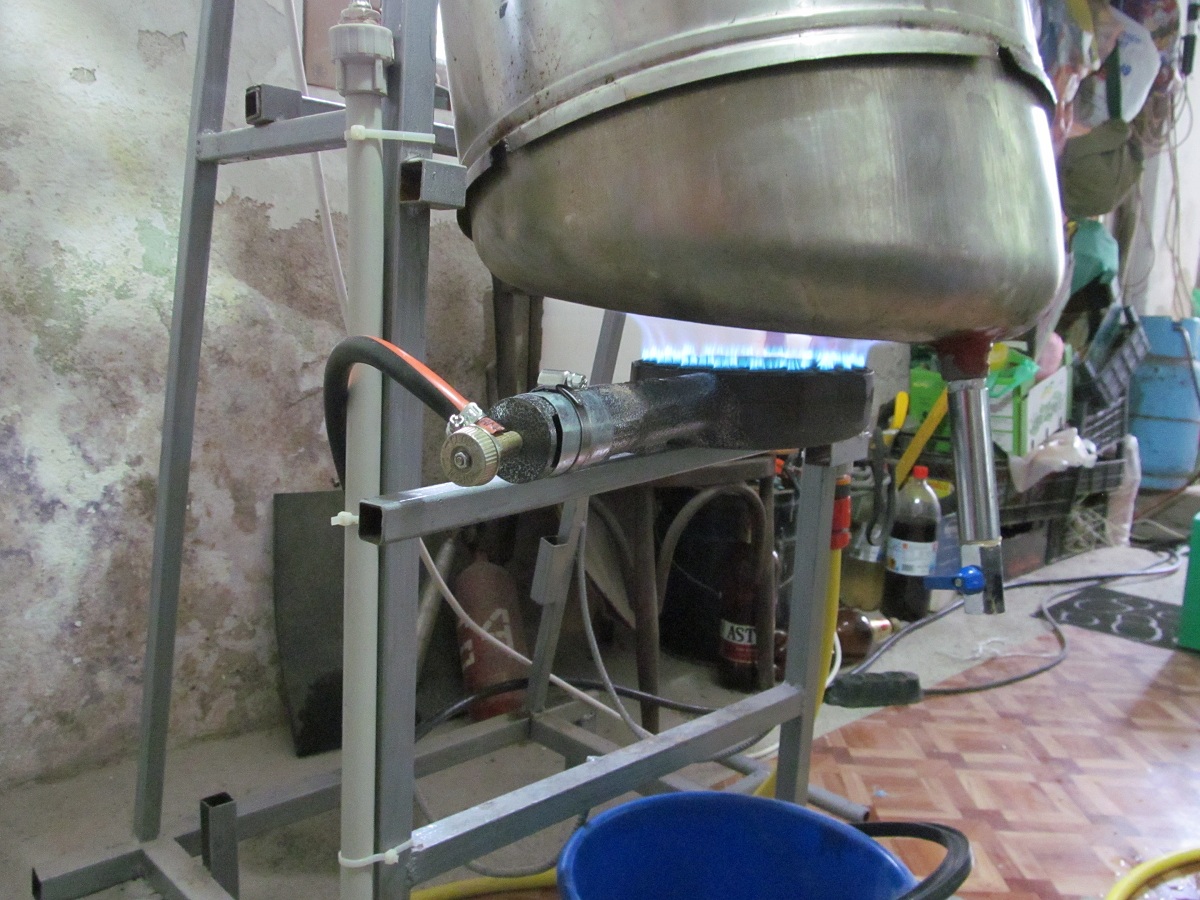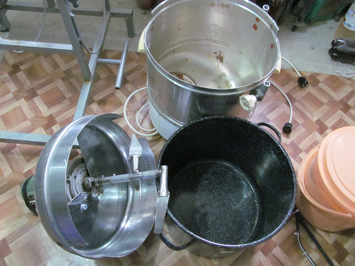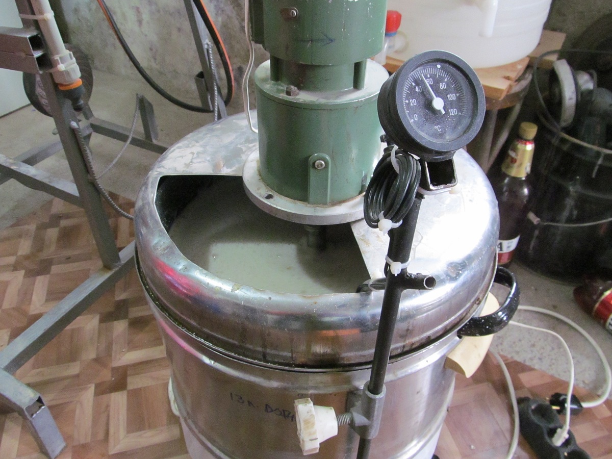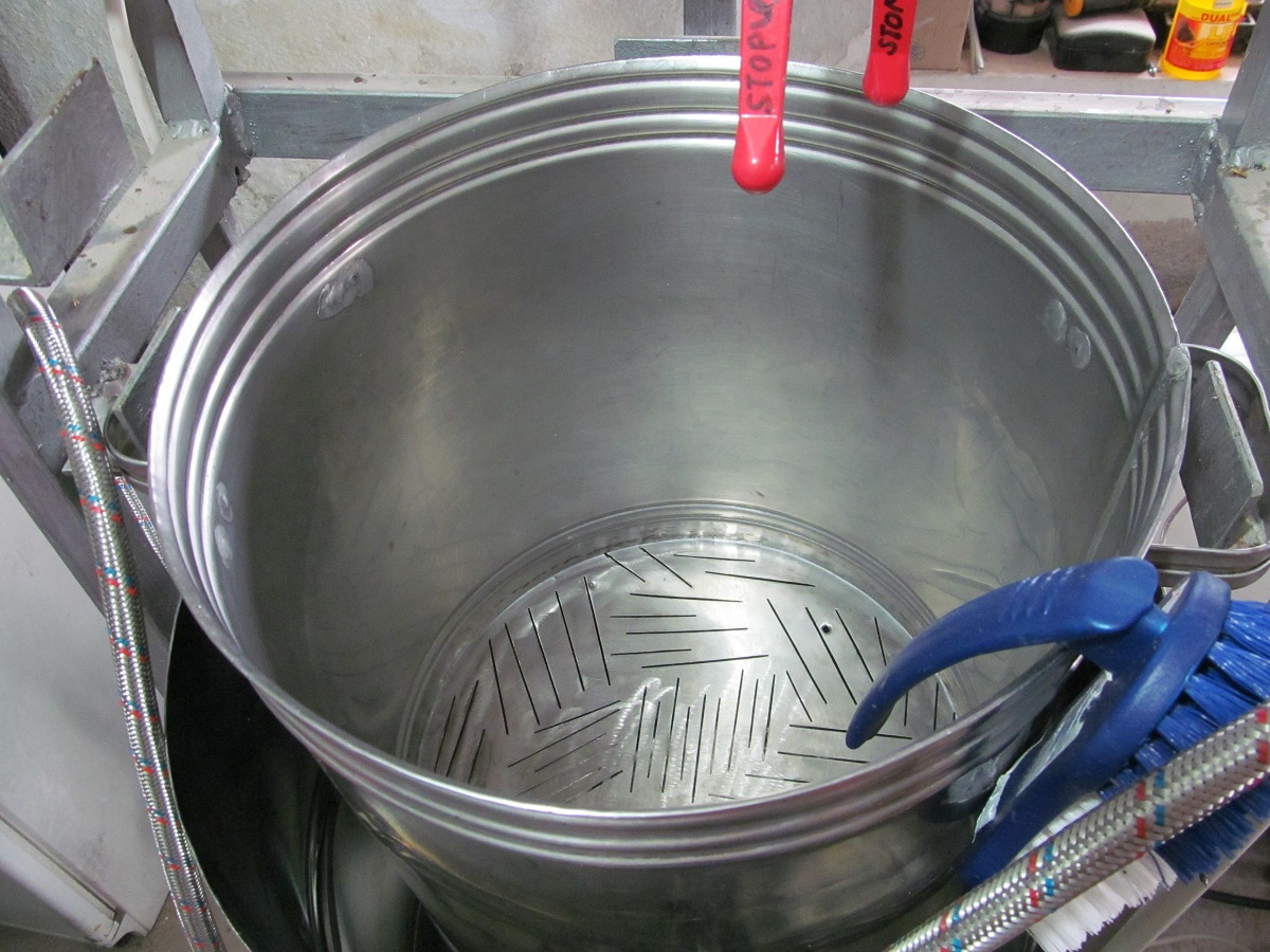А ето го и казана със съда за промиване и прецеждане, идеята на наклоненото дъно е като приключи варенето и течноста се отаи първо източвам утайките и след това останалото.