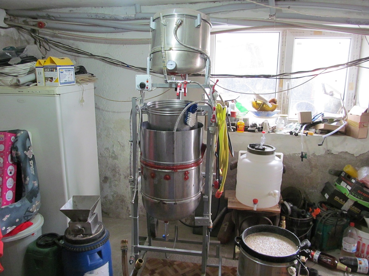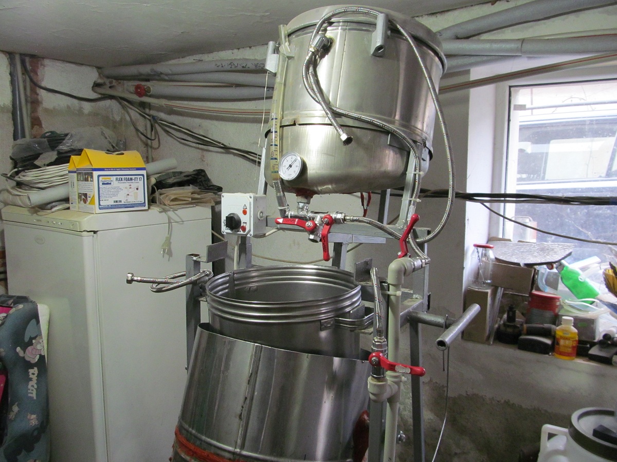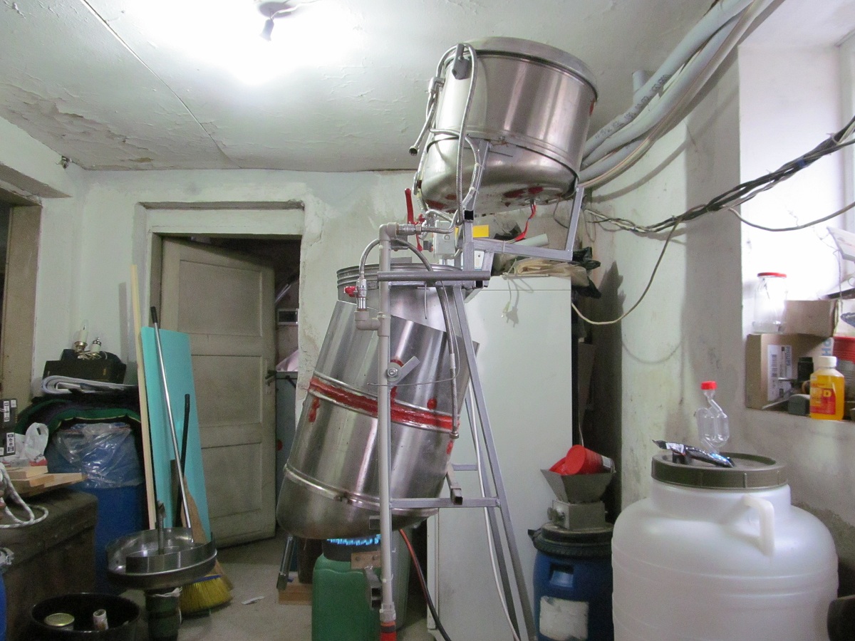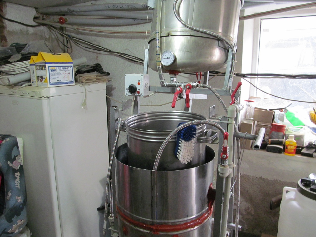 Здравейте, казвам се Данчо Георгиев и живея в Казанлък запалих се по бироправството и следя форума от самото му създаване, почнах да варя бира преди година.След първата варка ме изхвърлиха от кухнята (и без-това беше тясно)и се преселих на двора и мазето, почнах с едни тенжери и кофи ама аз имам проблем с кръста и скалъпих една техника от перални, която искам да покажа като всички вас!