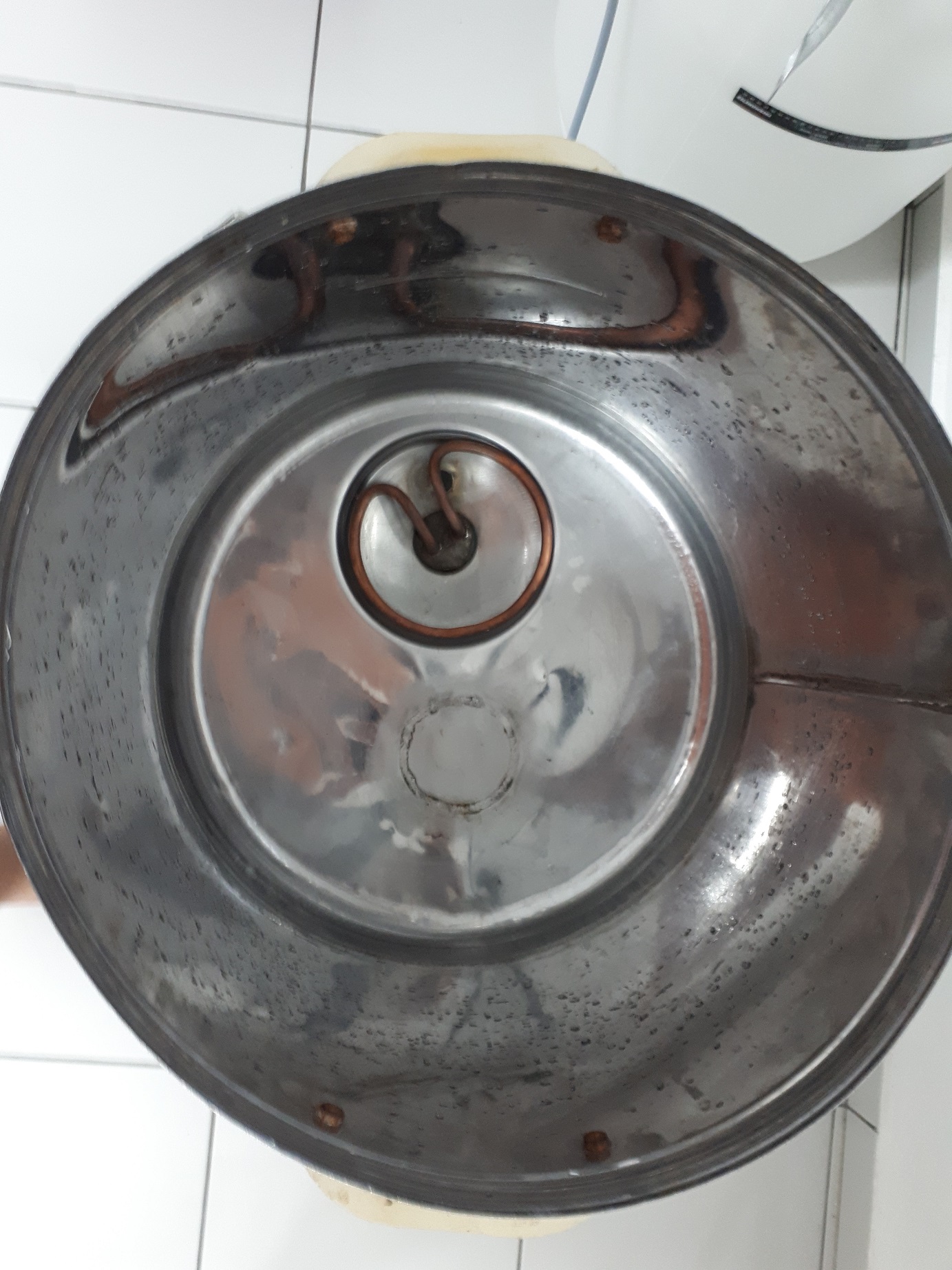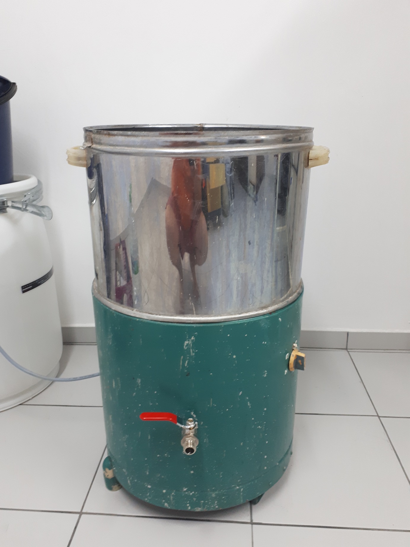 Отдавна искам да оптимизирам процеса на промиване. Едно от нещата което ме затрудняваше е да поддържам температурата на водата стабилна. Варя изцяло на газ. Докато промивам температурата пада. Запаля котлона тя се качила много и т.н. Затова се ориентирах към електрически HLT с малка автоматизация. Един прост контролер със сонда пусната направо във водата и нагревателя през контактор. Казана е неръждавейка е от пералня Роса. Трудното е махането на фланеца за ел. двигателя (трябва сериозно нагряване) и затварянето на отвора. При мен е заварено парче неръждаема ламарина. Нов нагревател (оказа се, че все още ги произвеждат). Продават го за 2kw, но го замерих е 46Ω което е малко над 1kw. И така ще върши работа. Кран монтиран на отвора за маркуча. От вътре има нипел, свързан с отвора на дъното със силиконов маркуч. Общо взето е това.