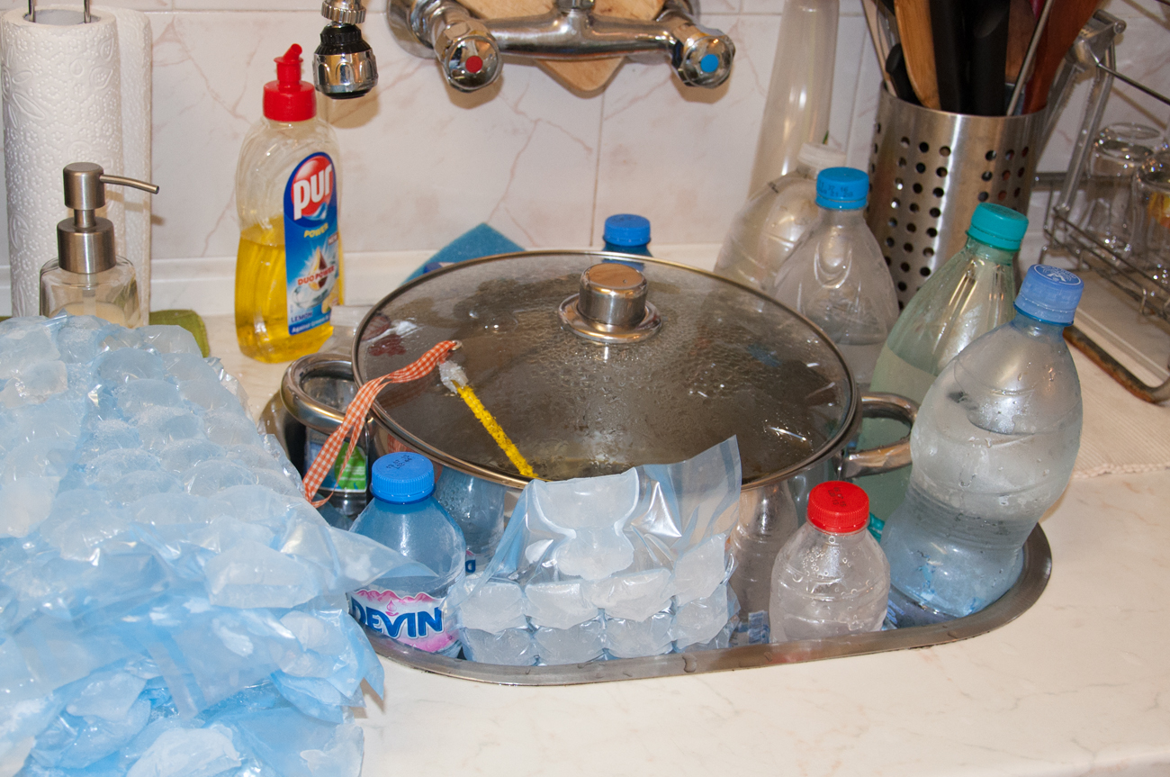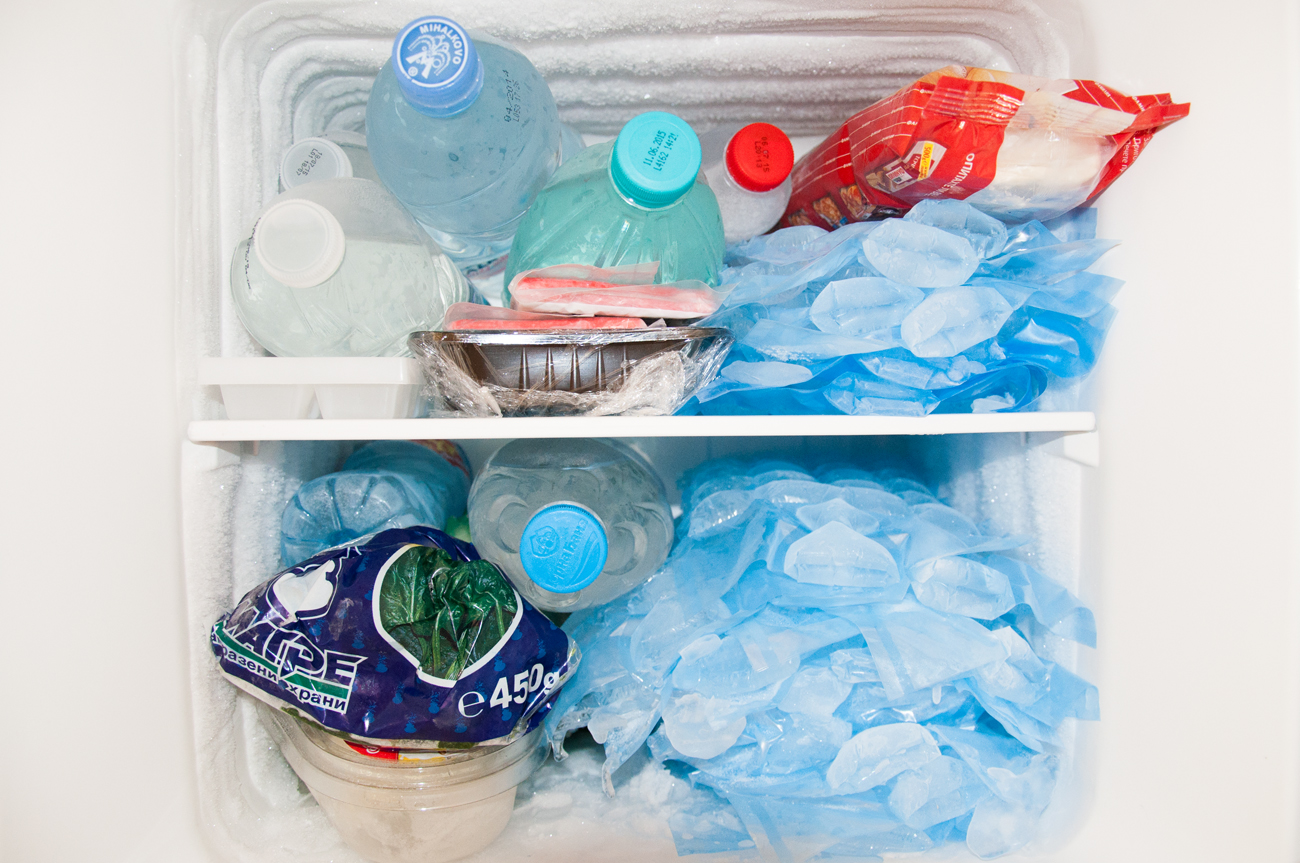 • подготвям леда – слагам пластмасови бутилки с вода във фризера