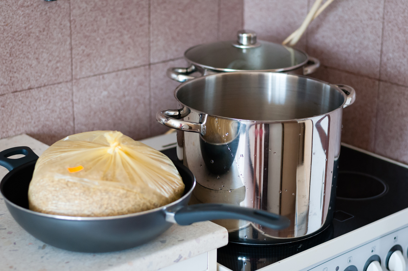 Описвам примерна варка с примерно оборудване в кухненски условия, като се придържам към съвсем базова рецепта, колкото да посоча ориентировъчни количества от необходимите суровини. Количеството преди варене е 12-13 л, a до ферментатора стигат около 9 л, крайният резултат (в бутилки) е около 8 л. Това е за бира със средно висока начална плътност (10-13°P), използван малц – 2 кг, ефективност – 65-75%.