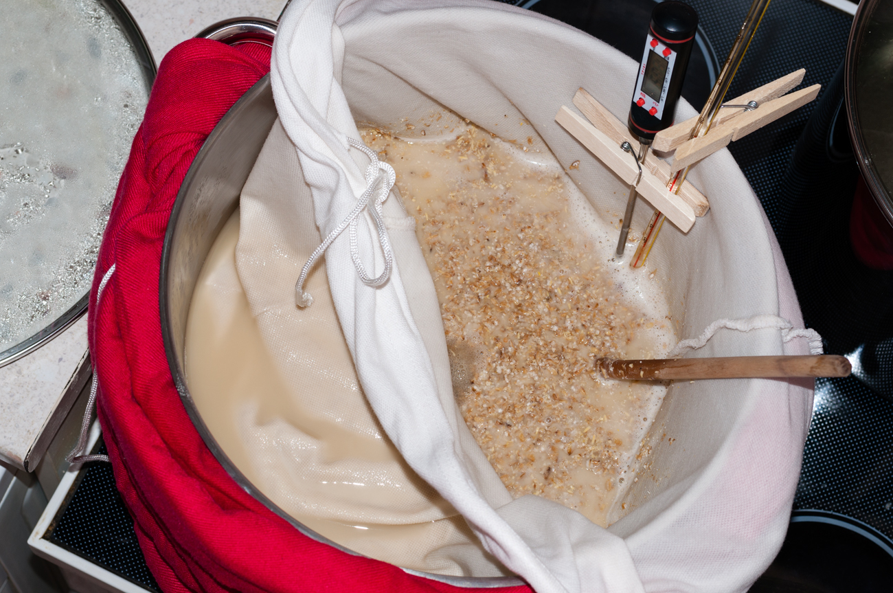 • BIAB – мързеливо и неефективно (по американски тертип); при този метод изсипвам водата за промиване при майша доколкото събере съда, след това вадя торбата, като оставям да се отцеди малко, накрая допълвам тенджерата с вода (от тази за промиването) до желаното количество преди варене;