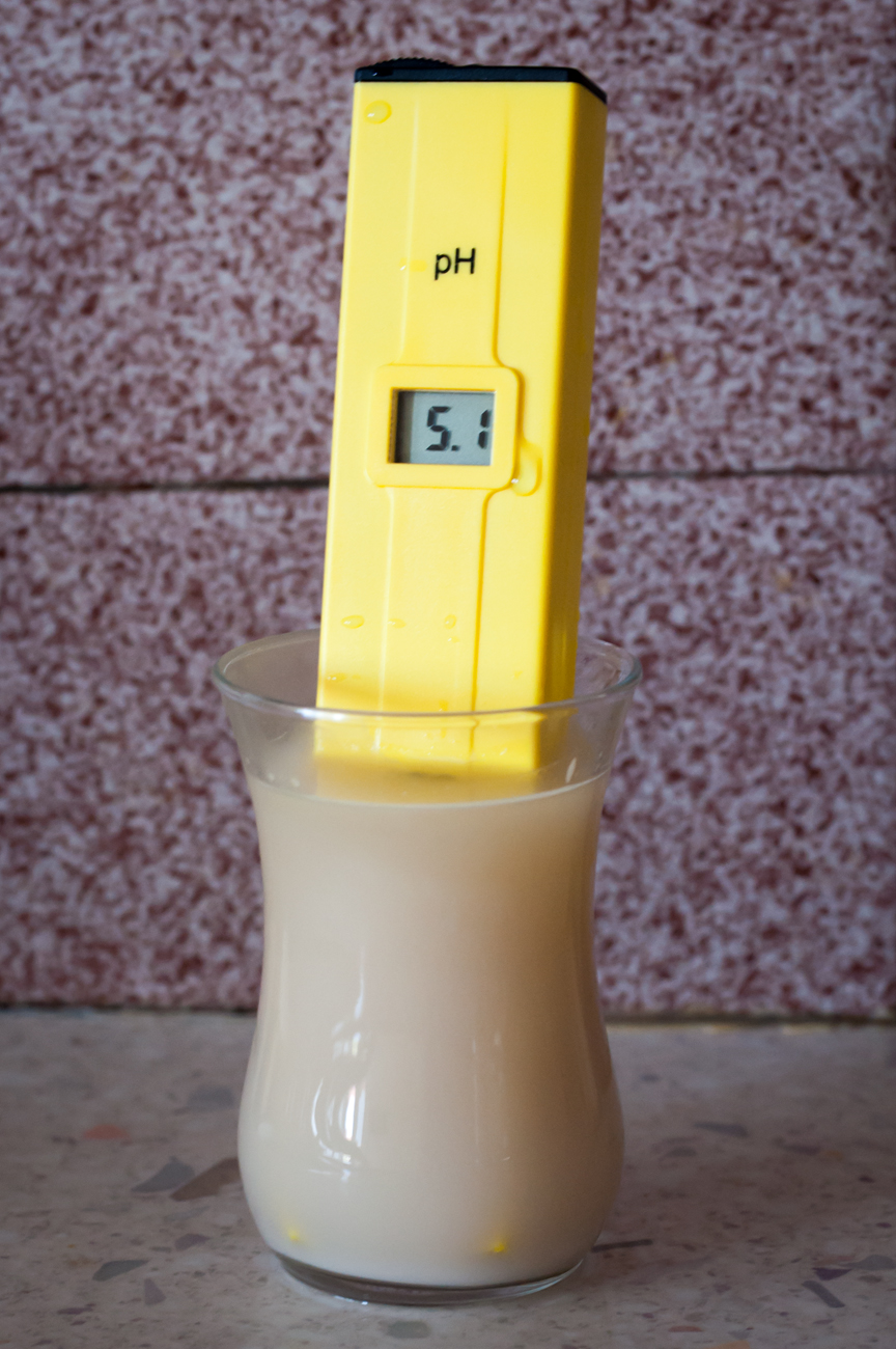 • при необходимост добавям млечна киселина към майша и повтарям измерването;
