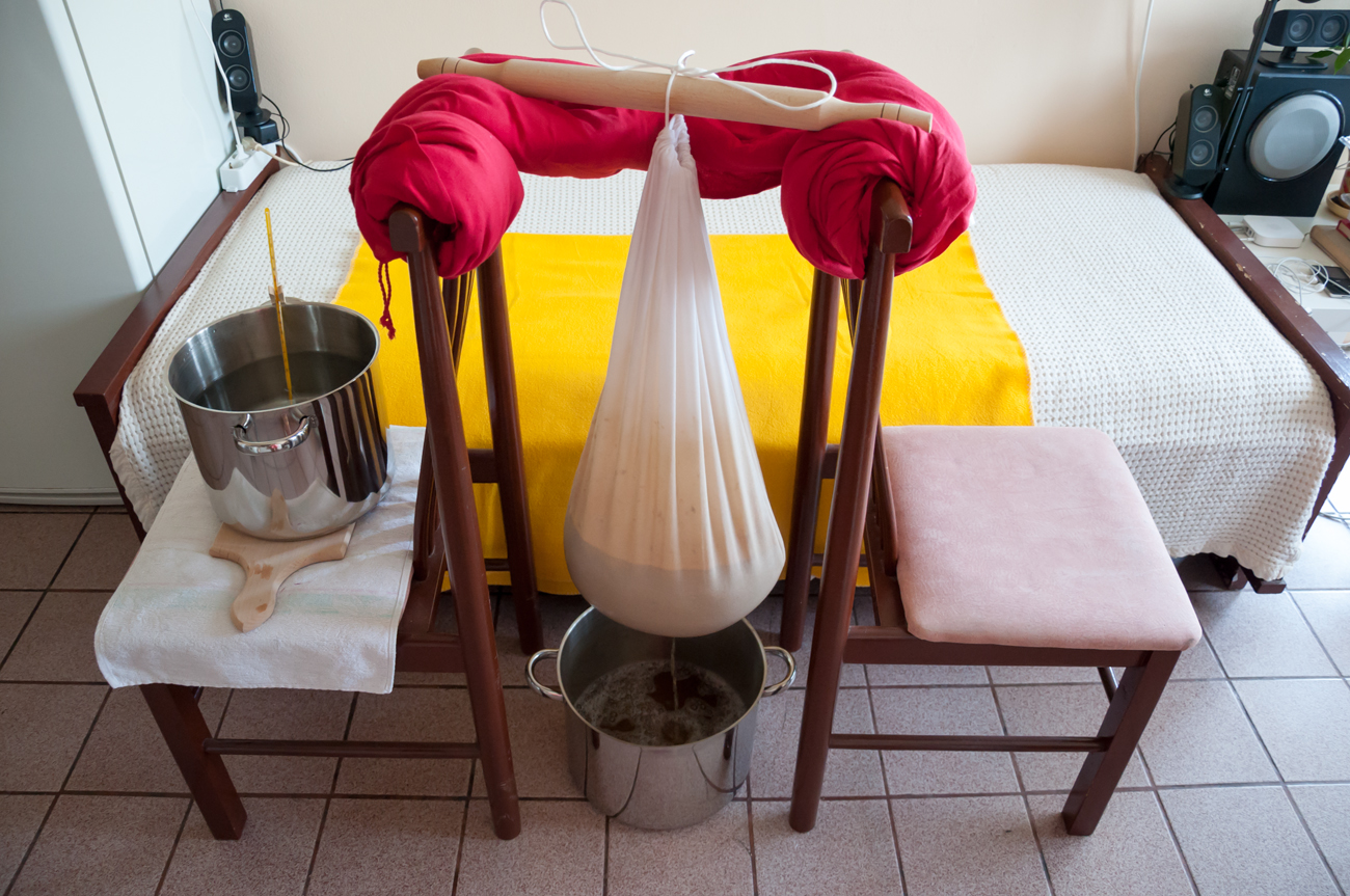 • по време на охлаждане, хмела и пресечените белтъци падат на дъното; внимателно прехвърлям мъстта към ферментатора без да размътвам утайкате; прецеждам през марля;