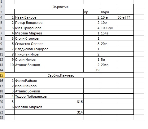 И аз имам само това,в сайта им така и не се появи нищо.Нито снимки нито класиране,5сръбски имена ги писаха една седмица след 09.06 уж когато се проведе състезанието.Наште бири добри или лоши не мисля че са стигнали до Панчево.Единия вариант е г-н Пампов да каже дали ги е дал ,другия да си чакам скоршита предполагам до месец 2ще се справят,ако има такъв.
