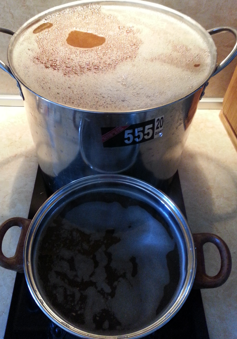 Проминане с предварително загрята вода и според моите съдове наливане в две тенджерки.