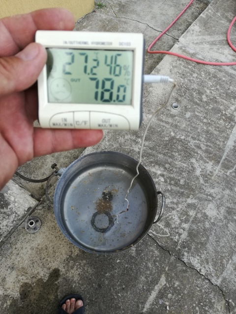 Изчаках 10 мин и направих дозагряване до 78 гр, като върнах майша в хладилната чанта и започнах промивката с 8 литра на 78 градуса вода.