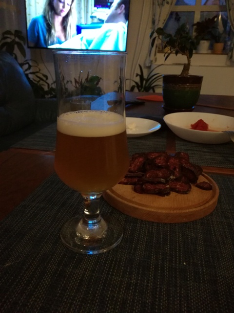Стартер направен с Нотингам и бяла захар. Ферментира в 10 литра бутилка от минерална вода, като на капачката съм залепил маркуче от система за кръвопреливане и края е потопен в чаша с вода. Поставих го в мазе, без слънчева светлина и постоянна температура на пода 20 гр. по Целзий. Държах във ферментатора около 7-8 дни. На петия ден ми се стори, че не е превряло добре, защото правеше балончета. На 8 ден проверка със захаромера показа 2%. Бутилирах с 7 гр. бяла захар на литър, разтворена и добавена след измерване на количеството.