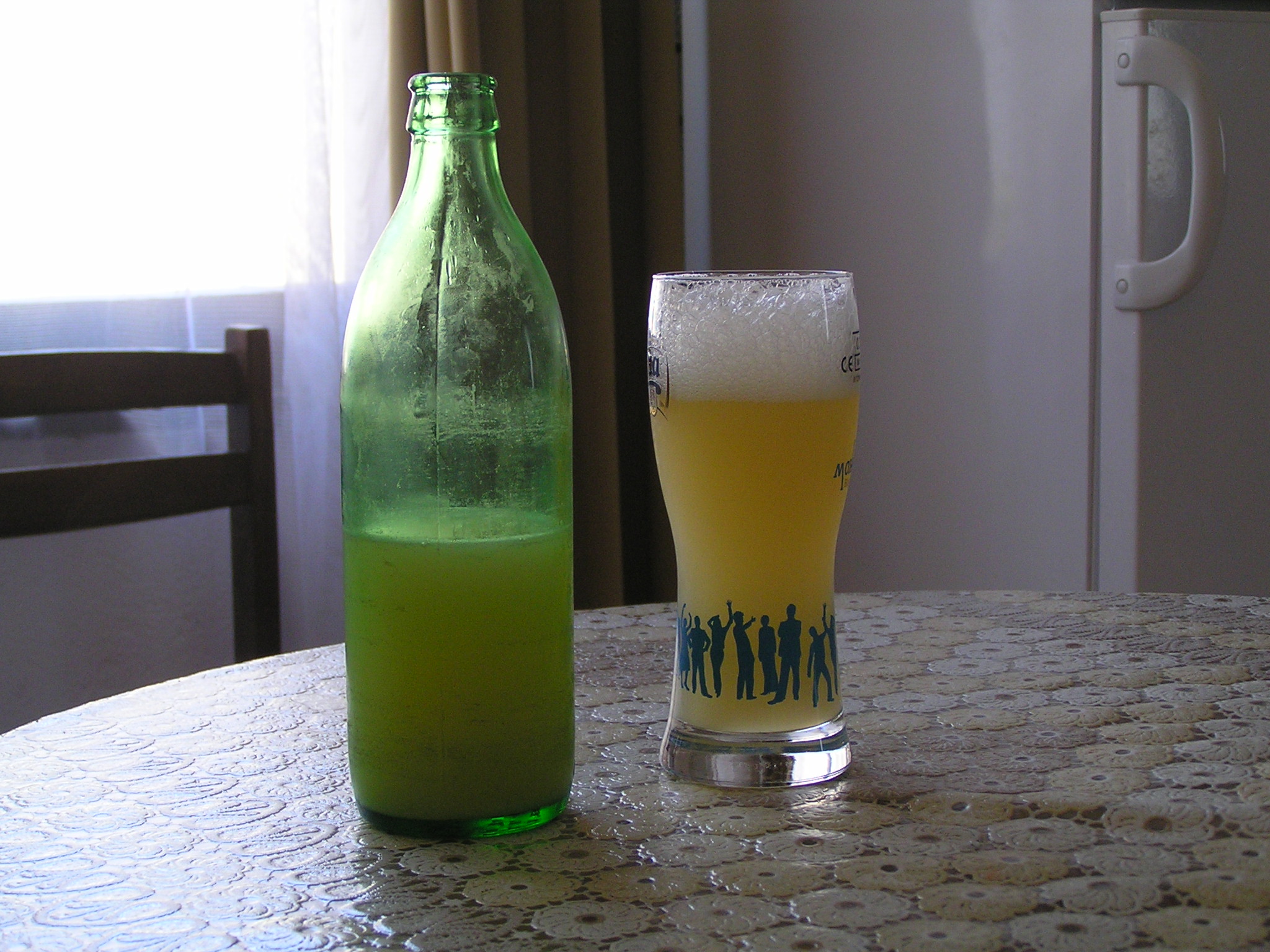 Бирата престоя още 4-5 дни в бутилки и 2-3 часа в хладилник. След това дегустация. Виждате резултата на снимката. По мое мнение - пие се. Прекалих обаче с хмела. Горчивият Магнум си е наистина горчив. Ясно ми е ,че при Вайцен бирите охмеляването е само веднъж,но нали все пак това е експеримент.