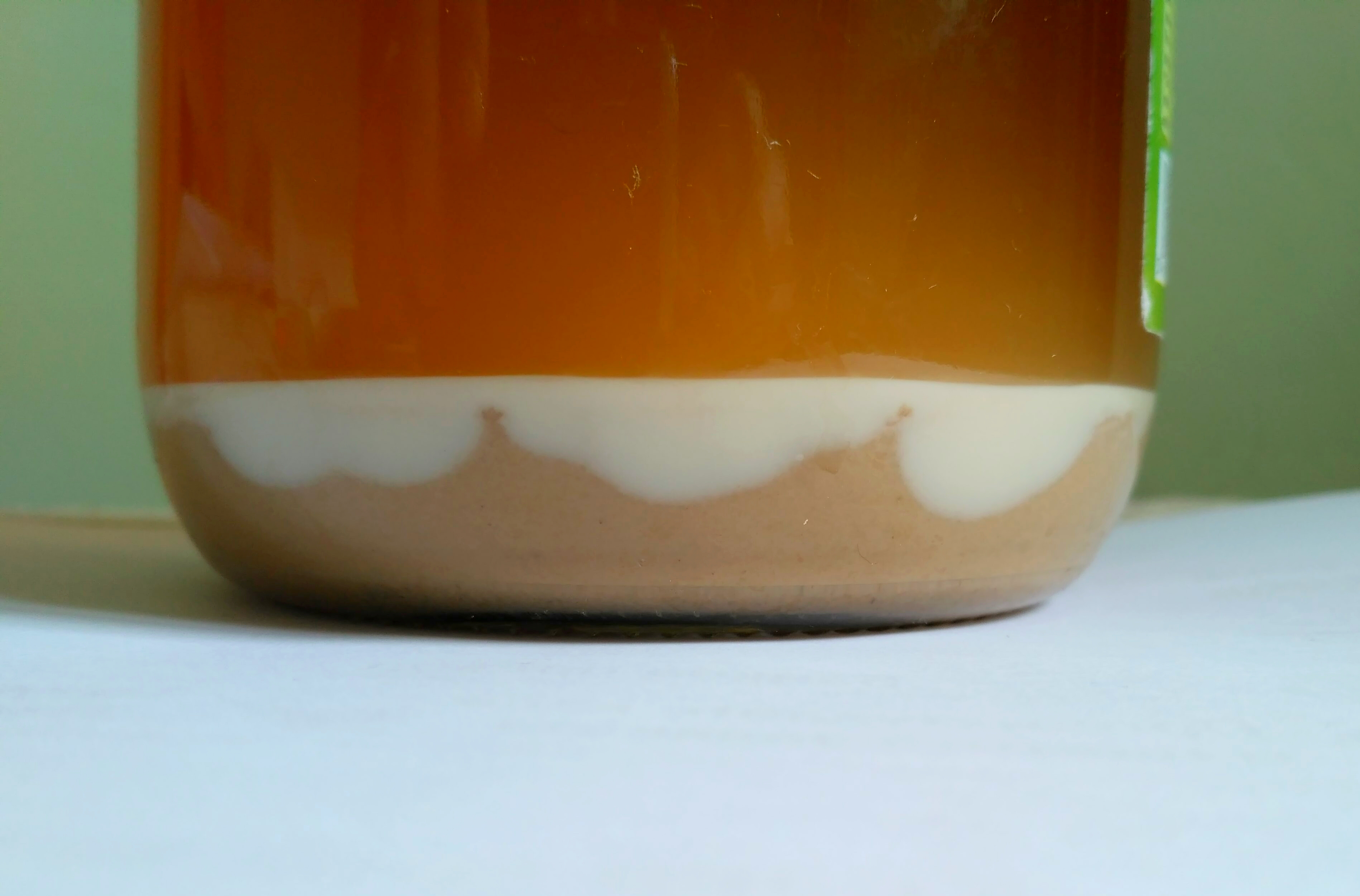 Може и снимката да лъже, но толкова бели дрожди не съм имал след промивка. Колко време след наливането в буркана е направена снимката?