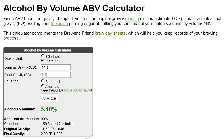 И по твоята ще излезе малко над 5 , но в долните % преминаването от Плато в SG дава големи разлики и от там и неточно смятане на алкохола.