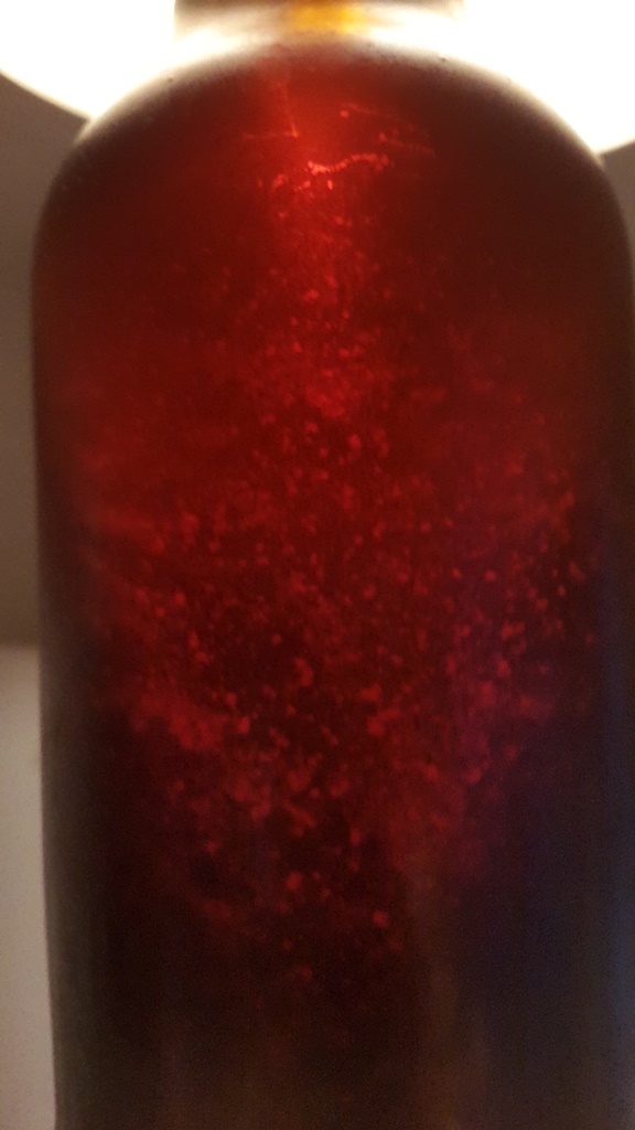 Много мислих дали е нещо друго, но не виждам какво може да е, защото преди бутилирането бях откалил след основната ферментация и след това - една седмица отлежаване в хладилник за избистряне. Бутилирах идеално бистра бира, а за газировка ползвах малцов екстракт и 10-на прашинки дрожди ("Маури Брю Дараут") на бутилка.