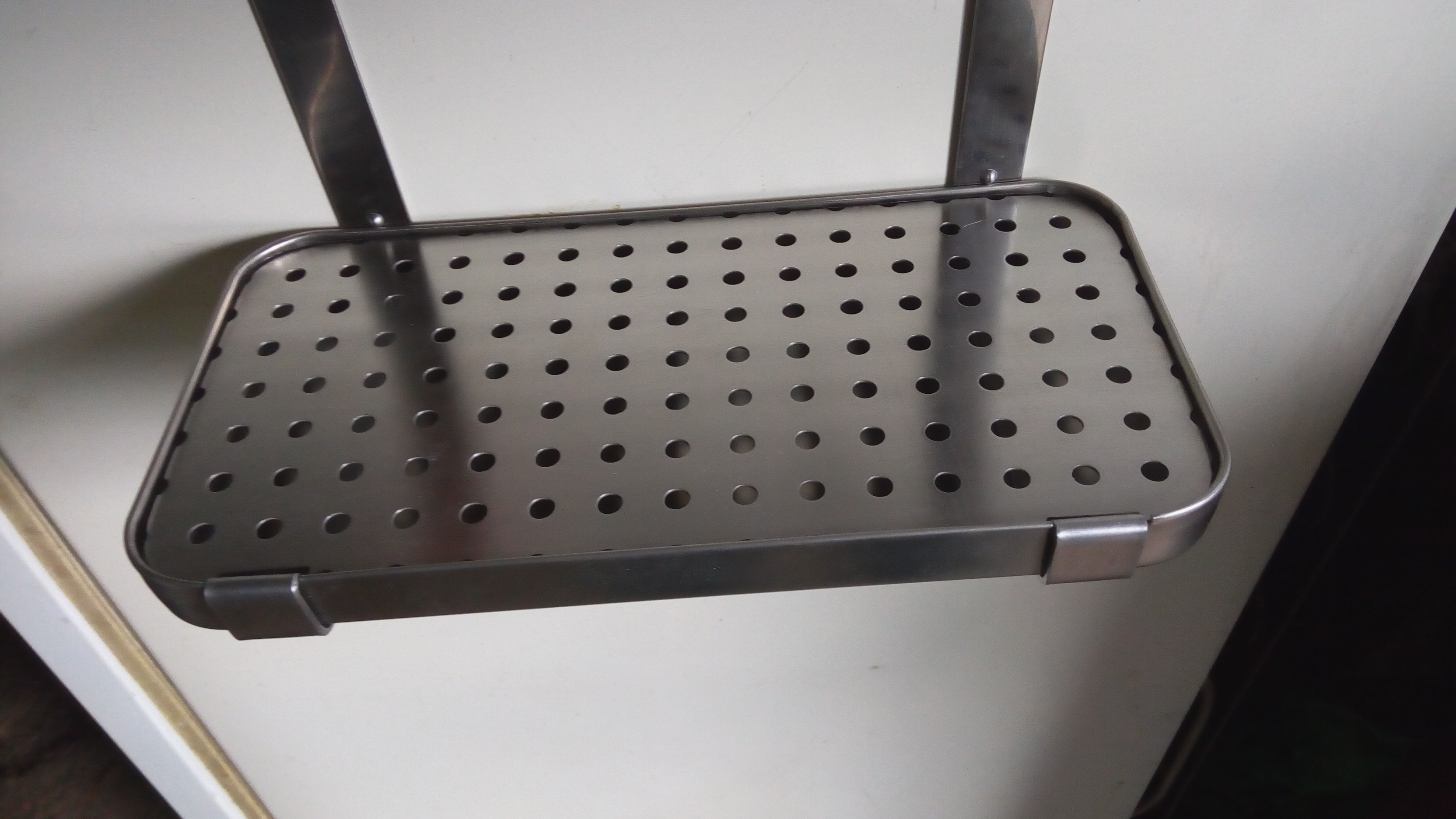 16лв от ИКЕА. Перфорираната ламарина е от стара съдомиялна. Само я изрязах по размера.