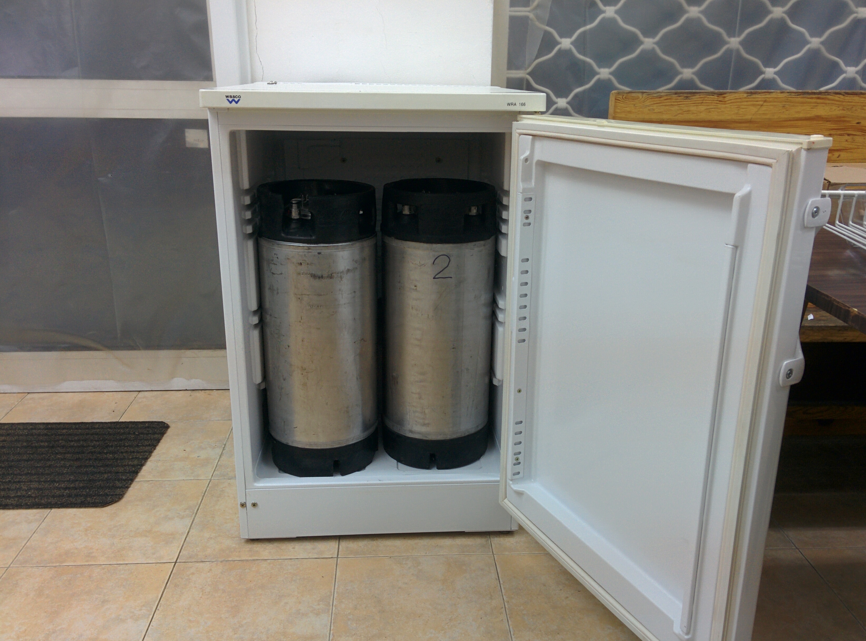 първи етап завършен - хладилник Wasco WRA 166 намерен случайно от магазин за уреди втора употреба за 160лв с половин година гаранция. Работи :) влизат две канти по 19л, само трябваше да развинтя регулатора, защото пречеше, и го сложих зад кантите. Сега пак си работи.