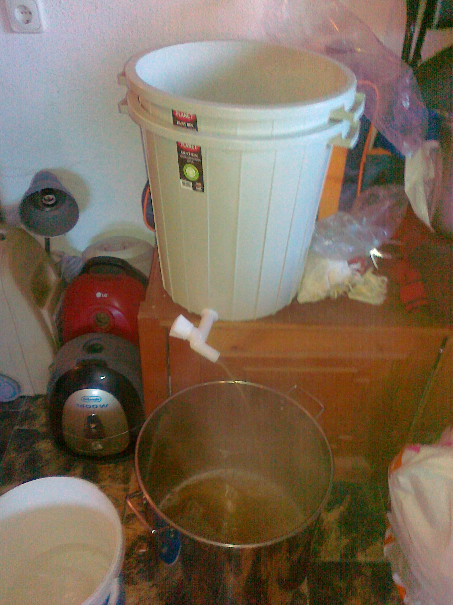 здравеите на всики казвам се васил и в4ера сварих първата си бира която трябва да е тъмна 1500 гр цветал малц и 500гр тъмен .Следвах то4ните паузи за озахаряването 65градуса 45 мин. 72градуса 15мин, после до 78гр. след положителна йодна проба прецеждах --беше песен с лаутертюна от магазина на виктор.после 90мин.варене.Магнум за гор4ивина после жатец за аромат.после охлаждах на водна баня до 15градуса и ето 4е излезе ПРОБЛЕМ ТРЪГВАМ ДА НАЛИВАМ ВЪВ ФЕРМЕНТАТОРА И НЕЩЕ ДА МИНАВА ПРЕЗ ТЕНЗУХА на 4 ката после на два ката после на 1 после през цедка за 4аи неще и неще най накрая сипах я така както беше и мисля да из4акам малко и да направя едно откаляване после още едно да се избистри добре питам само като седи с остатъците от хмела дали много ще се вгор4и .После ще ка4а снимки сега отивам да видя дали ферментира до скоро на вси4ки