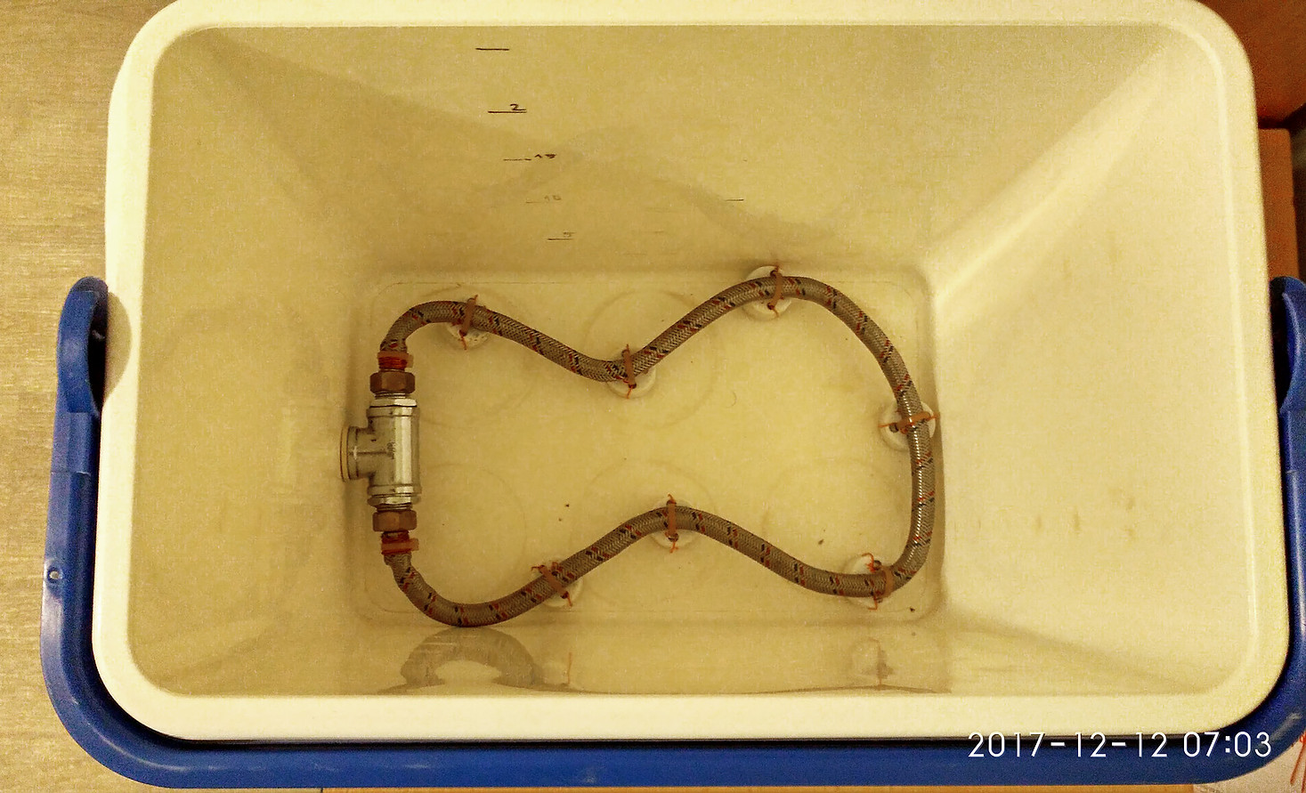 Да имам хладилна кутия 45 литра Igloo с меден Manifold, но идеята е да опитам всичко в един съд, без промиване, както е описал колегата.