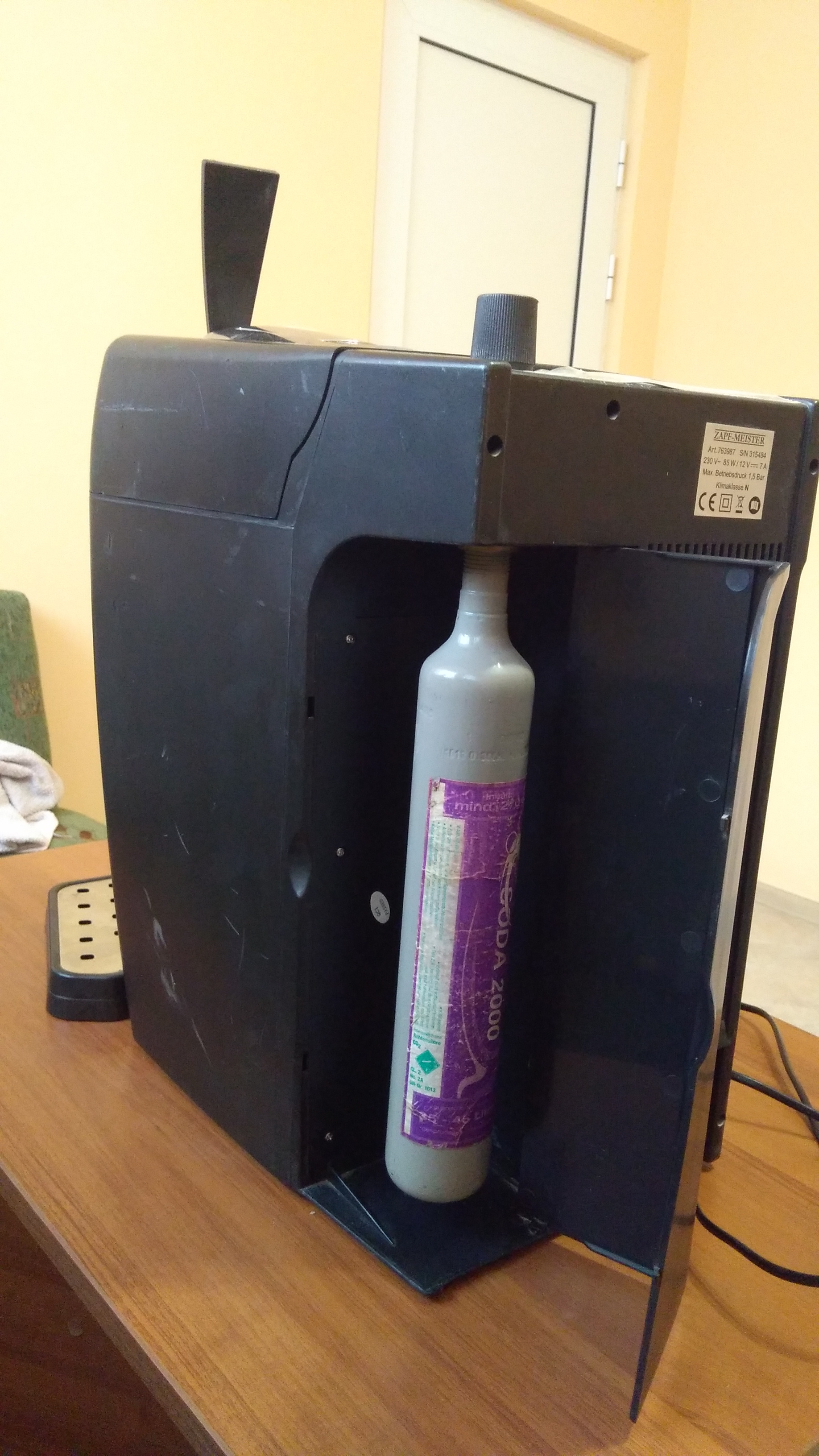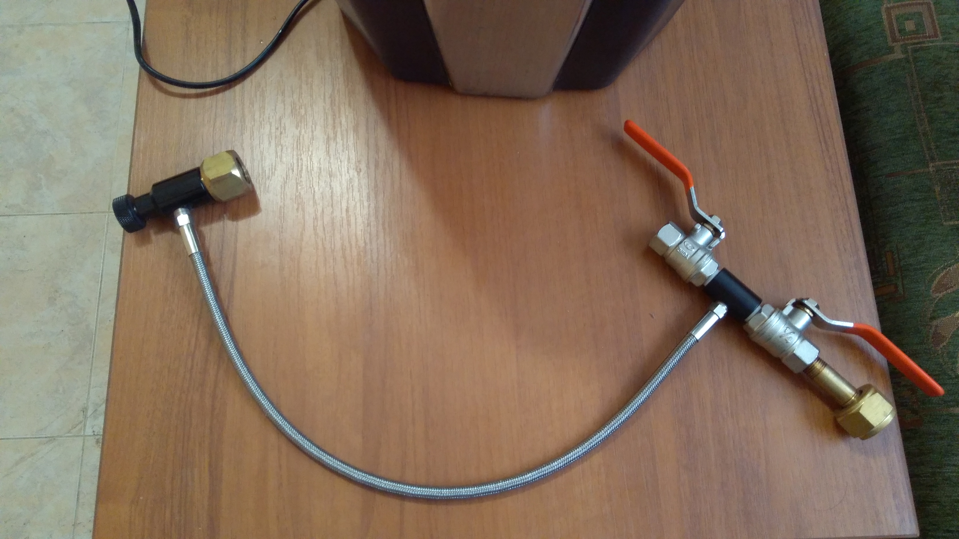 Комплектът включва и приспособление за пълнене на бутилката с СО от по-голяма.