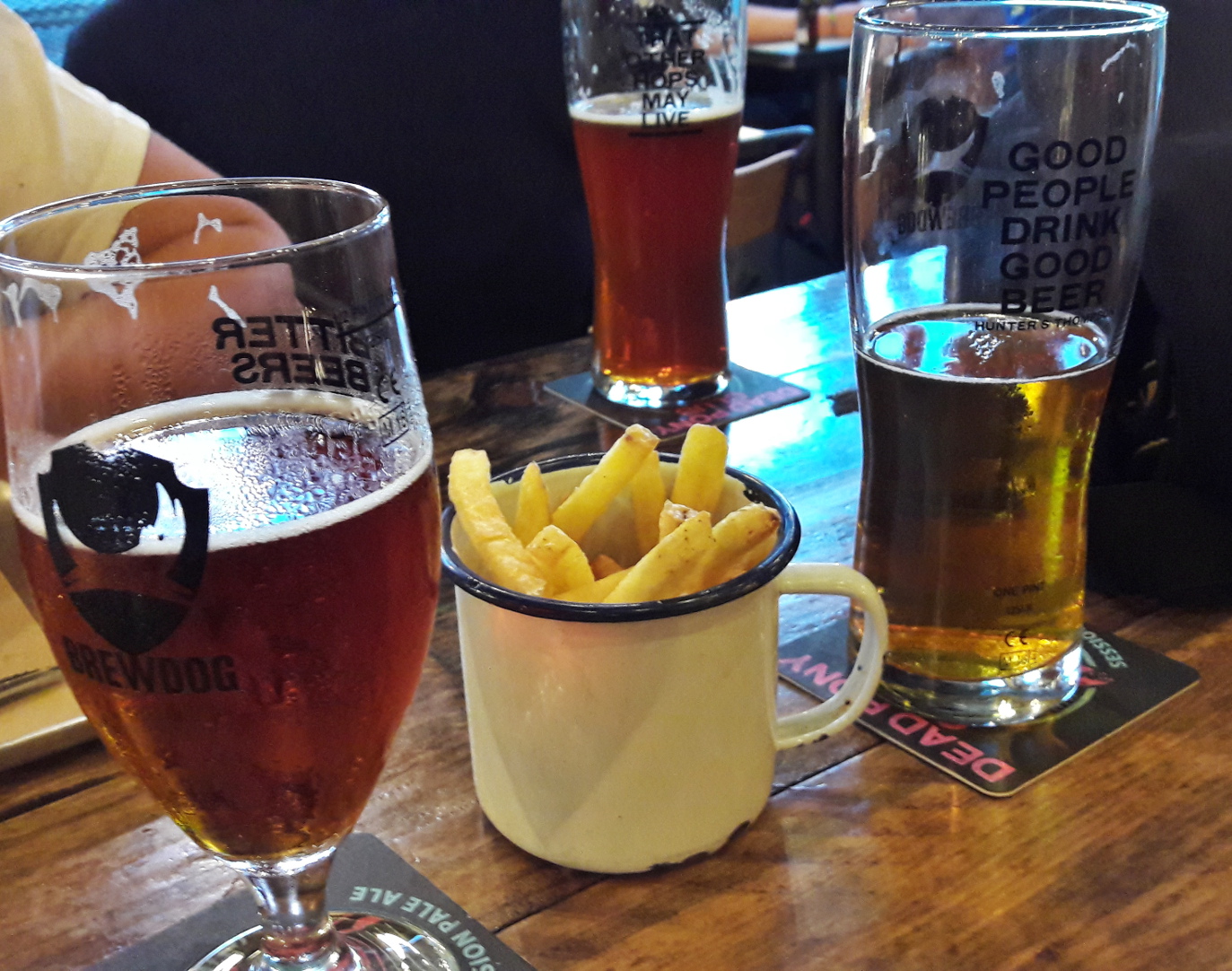 Миналата седмица правихме малка екскурзия из Шотландия и Ирландия. Най-добро впечатление ми направи Гласгоу ... страхотен град, страхотни хора. Ако го посетите, не пропускайте да хапнете в The Counting House намира се до George Square! Храната е 5-6 паунда и е много добра и има крафт бира всякаква ... В Единбъро също е страхотно, но в туристическите райони храната е по 2. В месните супермаркети търсете тези бири